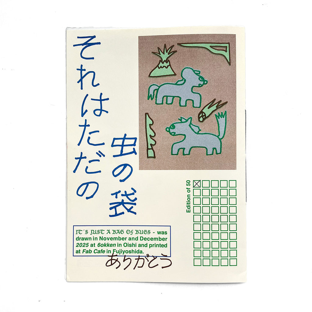 オーストリア・ウィーン拠点のリソグラフ印刷スタジオ・出版レーベル<Soybot>のメンバーでもあるアーティストのBURNBJOERNが、2025年11月から12月にかけて、山梨県河口湖の「6okken」に滞在中に制作したドローイングを収録した作品です。