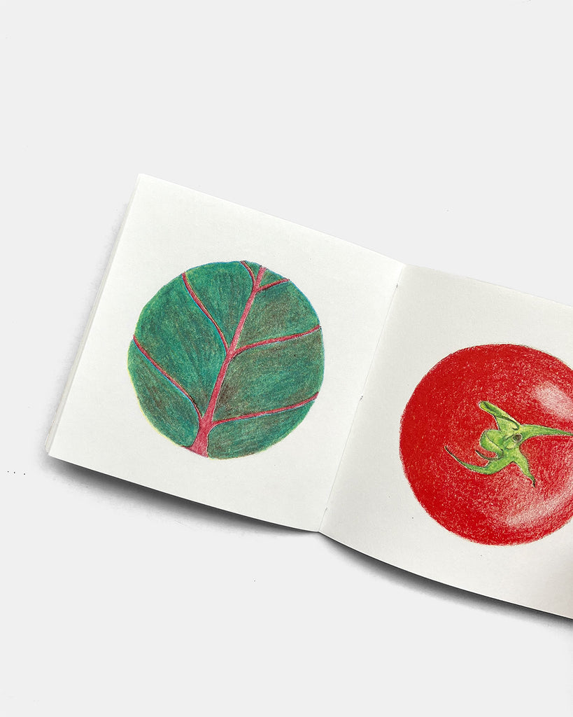 バンコク出身・アムステルダム拠点のアーティストPrang Sayasilpiによる色鉛筆画を収録。2025年に福岡県糸島市でのレジデンスプログラムに参加していた時に出会った、食べ物を中心とするまるいものにフォーカスした作品。アムステルダムの印刷スタジオ・出版レーベル<Terry Bleu>によるリソグラフ印刷です。