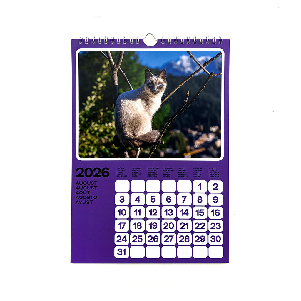 “Cats of the Alps” is a 2026 Catlendar featuring 12 cats from Valais, Switzerland.