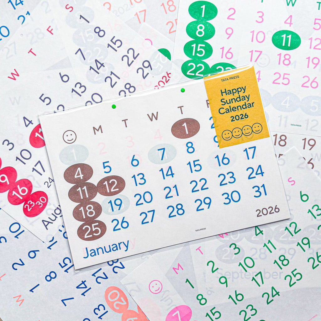 札幌のリソグラフスタジオ<TATA PRESS>の2026年カレンダーです。A3サイズ、壁にかけるときに使える紐がセットになっています◎